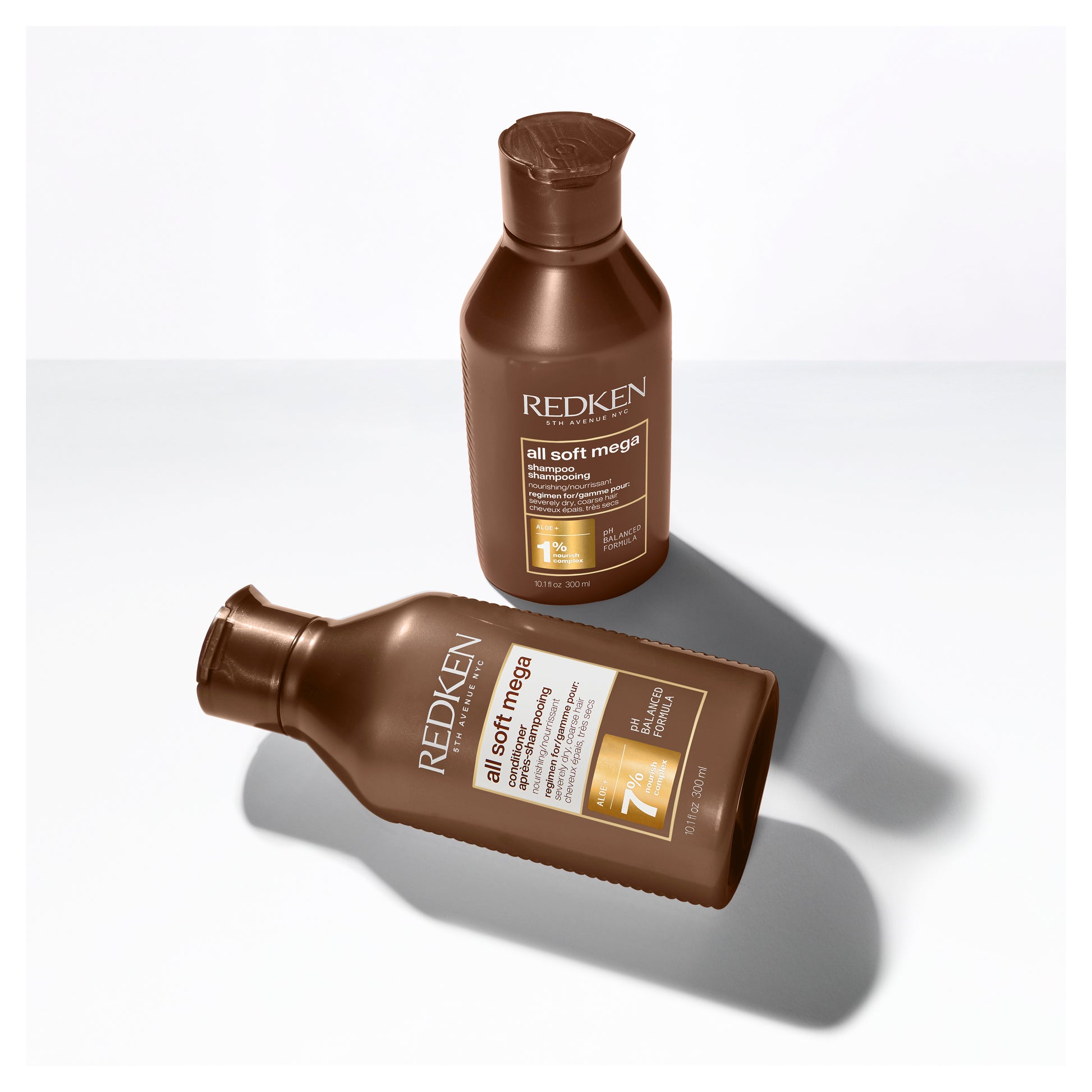 All Soft Mega products are designed to deliver the ultimate hydration and nourishment for your hair. This line is great for medium to coarse hair types that struggle to retain enough moisture with regular hydration products. All Soft Mega is formulated with Redken's Nourish Complex infused with Aloe Vera to soften and moisturize dry hair.