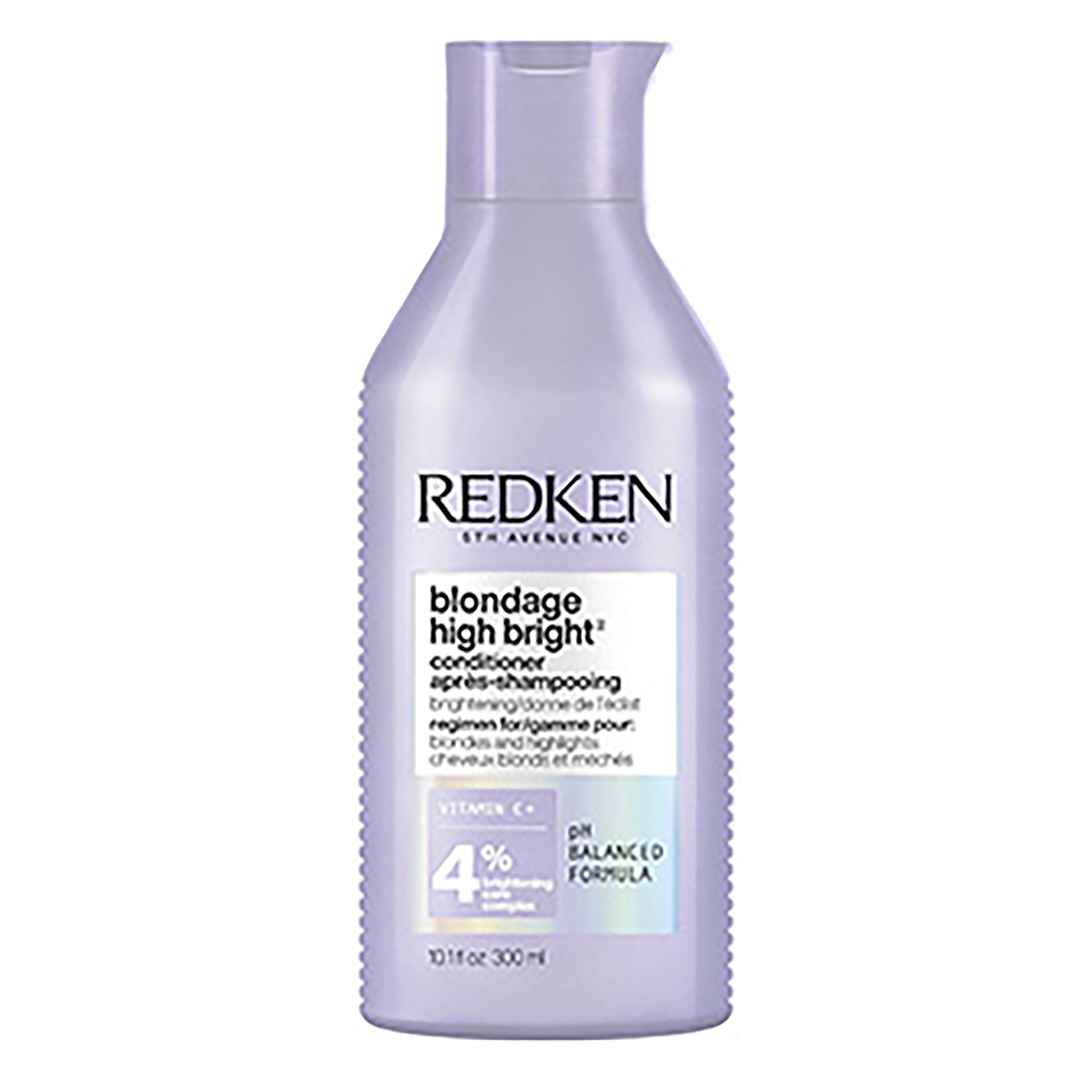 The new Blondage High Bright system is our answer to blondes who lose lightness and brightness in the weeks between salon visits. This conditioner is the final step in the 3 step High Bright regimen, out new blonde haircare system powered by Vitamin C and Redken's Brightening Care Complex. This system washes away buildup and impurities in hair, brightening dulled, darkened or mattified blonde hair caused by dulling agents and pollution. Get an instantly brighter blonde in one use when you use the entire High Bright system.